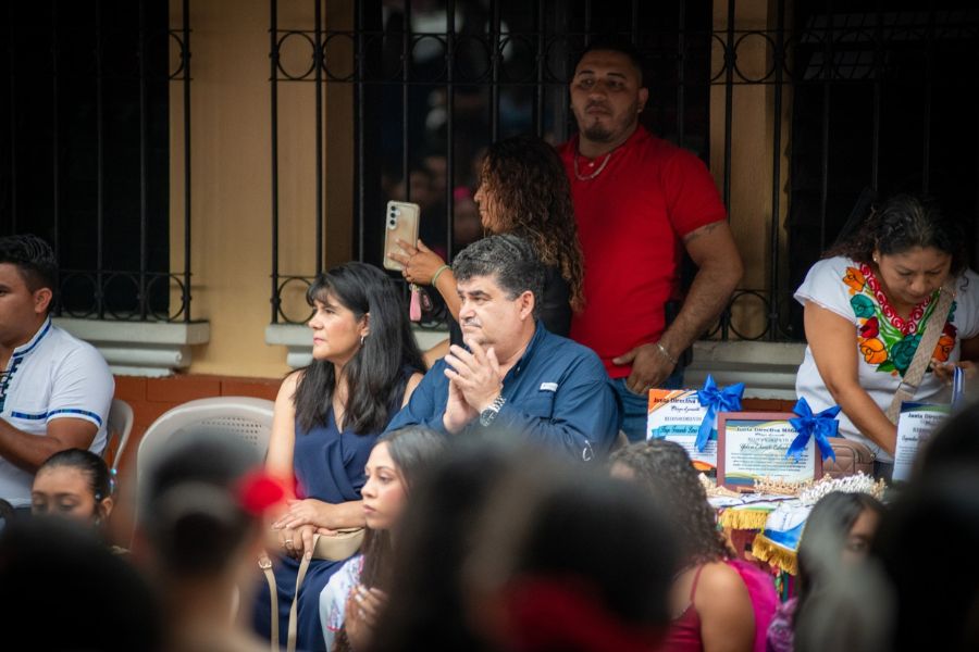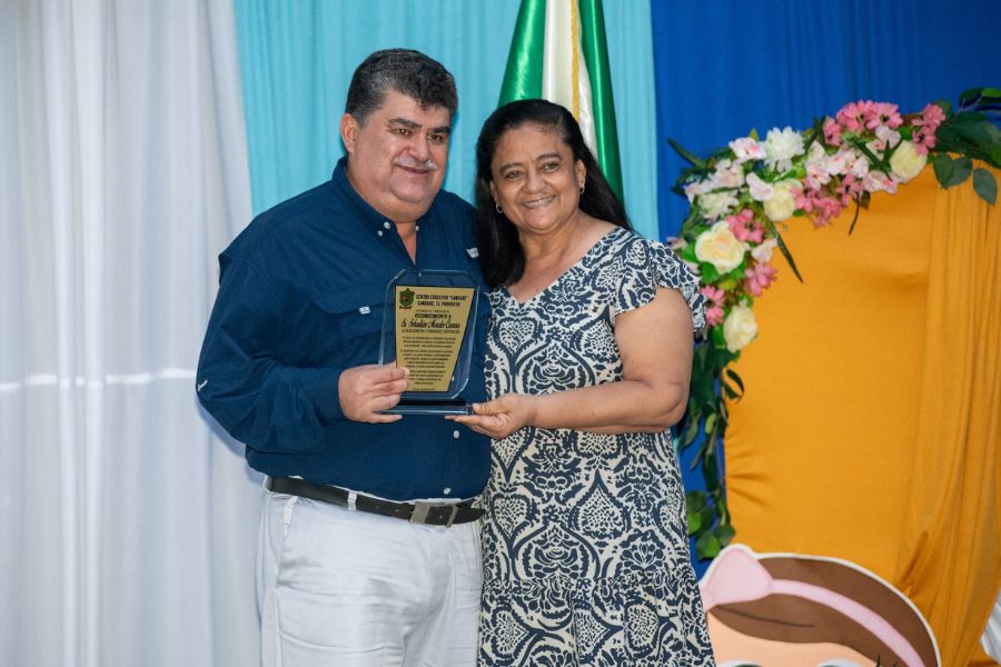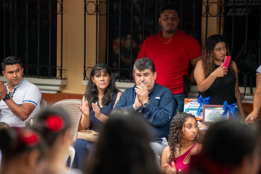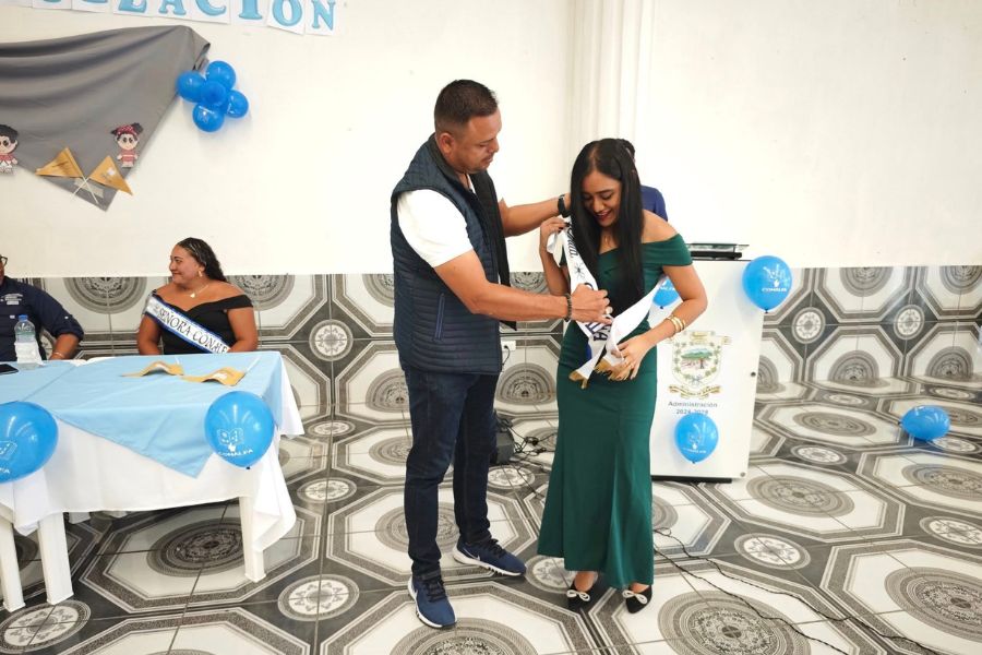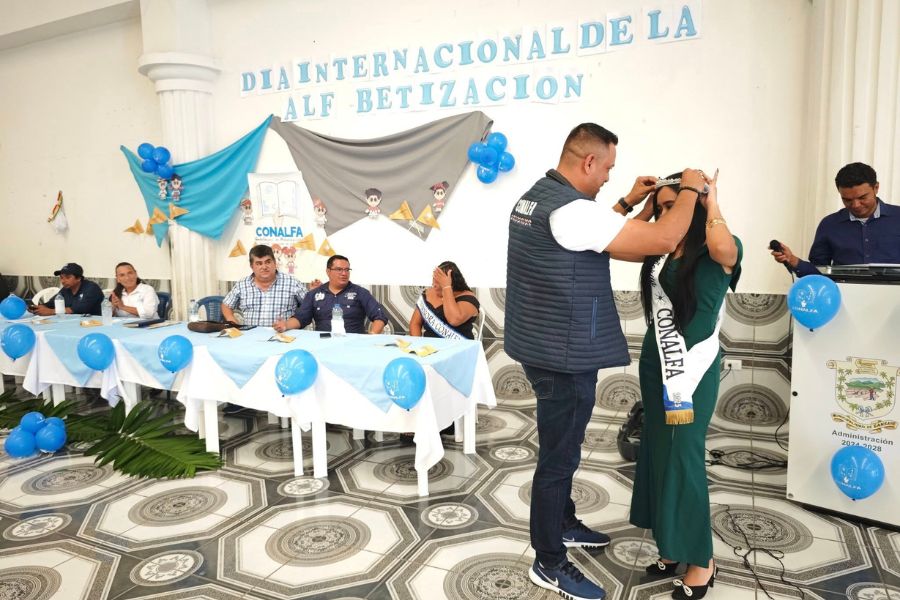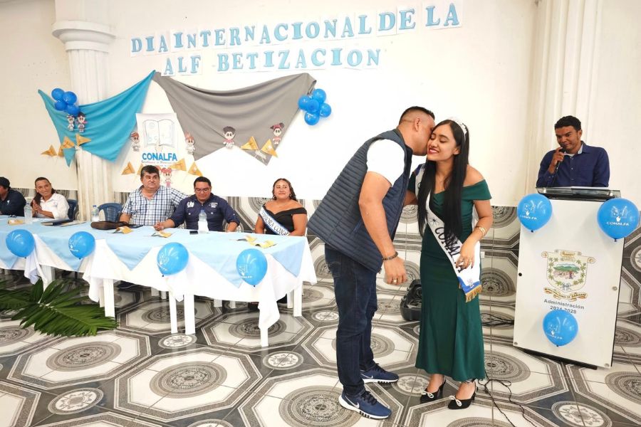 Como parte de la ceremonia, el señor alcalde coloca la banda a la señora y al señor CONALFA, así como al profesor Carlos Téllez, quien representa a CONALFA en el municipio de Sansare. Además, CONALFA otorga un reconocimiento al señor alcalde por su constante apoyo a la educación.