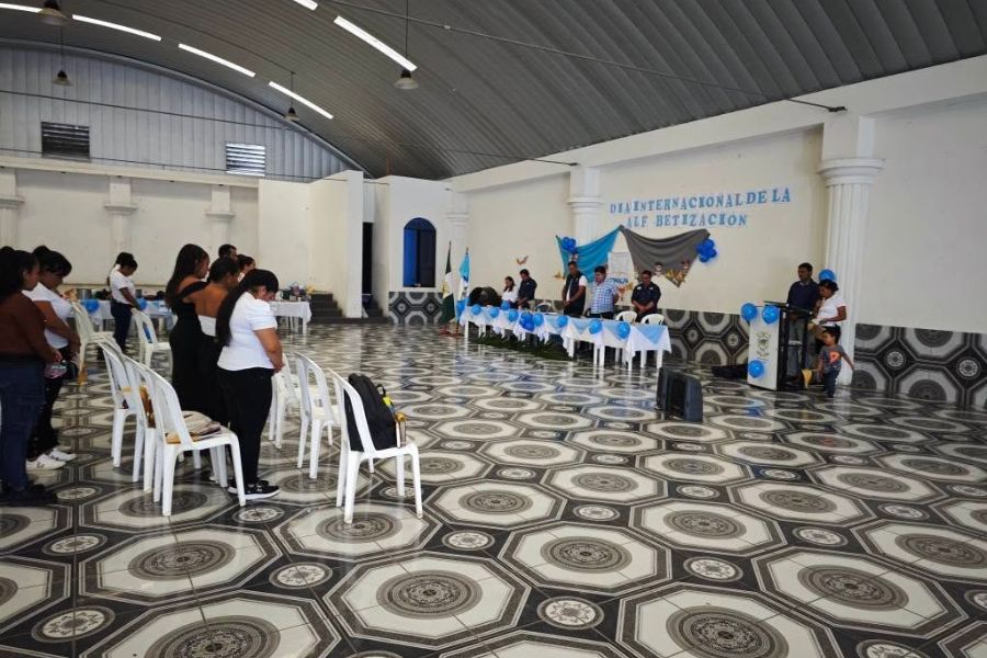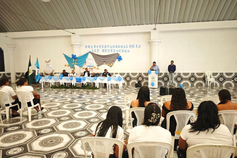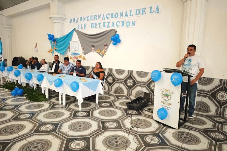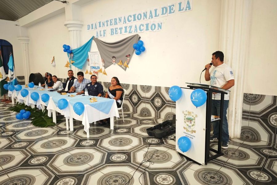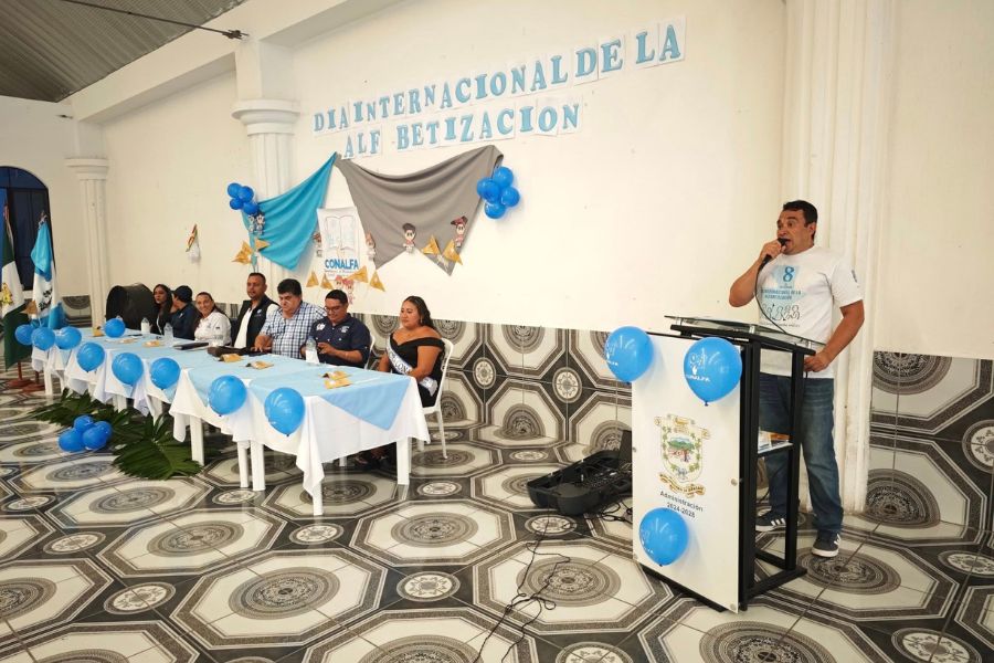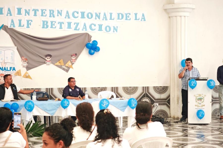 En estos momentos, el señor alcalde se encuentra celebrando el Día Internacional de la Alfabetización, demostrando así su apoyo a la educación. Durante el acto, el alcalde se dirige a todos los presentes, evidenciando su compromiso con la educación en el municipio.