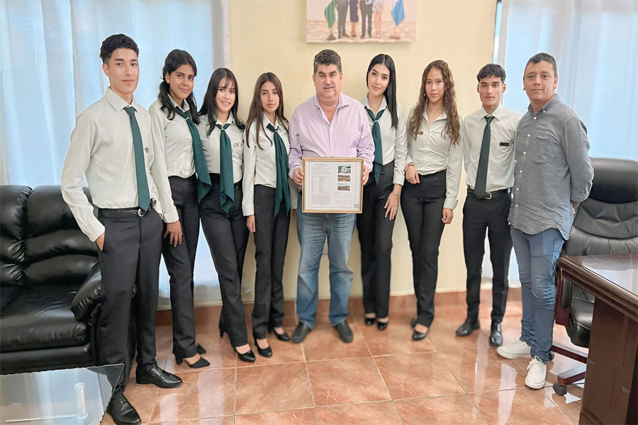 Entrega de reseña histórica de la municipalidad de Sansare, por parte de los alumnos de Bachillerato en Computación del Liceo Sansare y Director de Área Informática Óscar Rivas