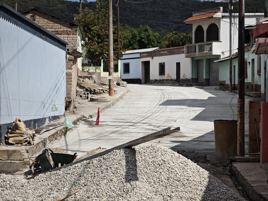 Continúan los trabajos para mejorar la calle principal en la aldea La Trinidad.