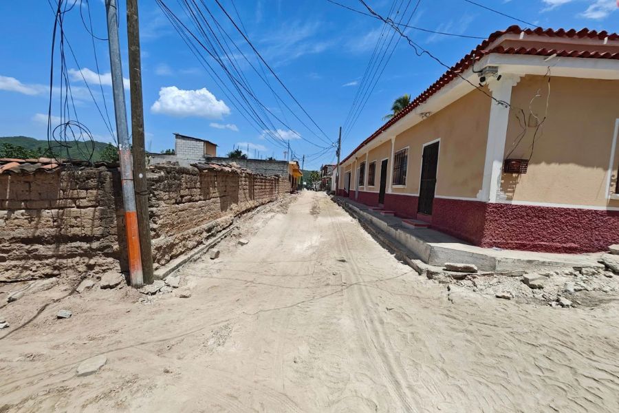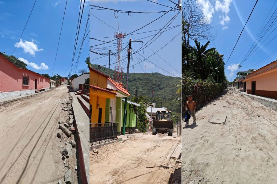 Continúan los trabajos para mejorar la calle principal en la aldea La Trinidad.