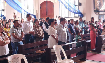 El señor alcalde junto a su esposa y concejo municipal se hacen presentes en la misa del día de la fiesta patronal en honor a la...