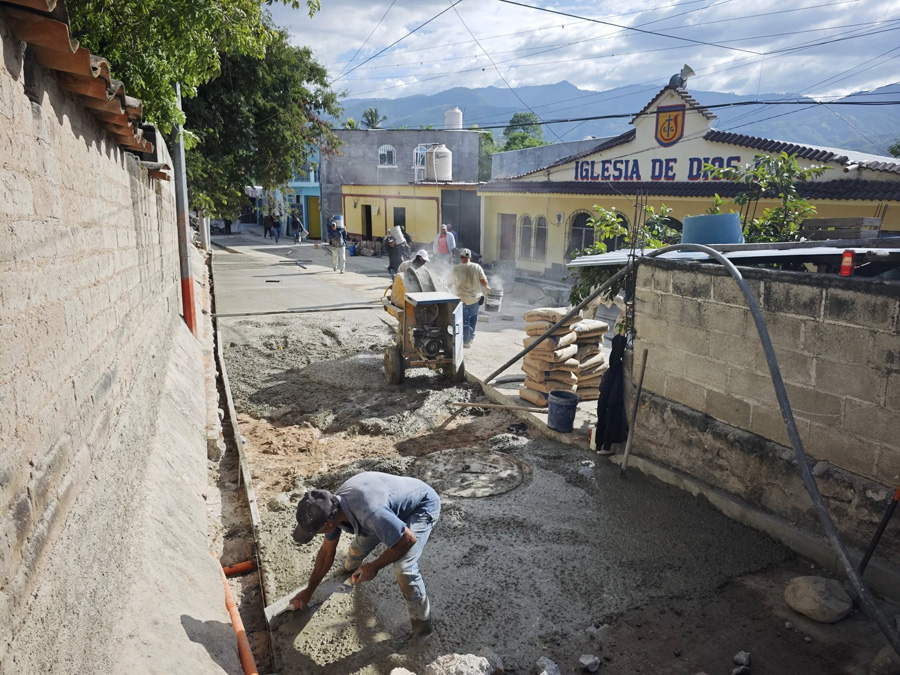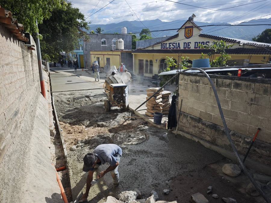 Continúan los trabajos para mejorar la calle principal en la aldea La Trinidad.