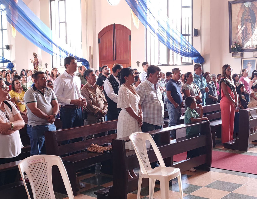 El señor alcalde junto a su esposa y concejo municipal se hacen presentes en la misa del día de la fiesta patronal en honor a la virgen de las Mercedes