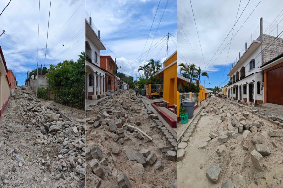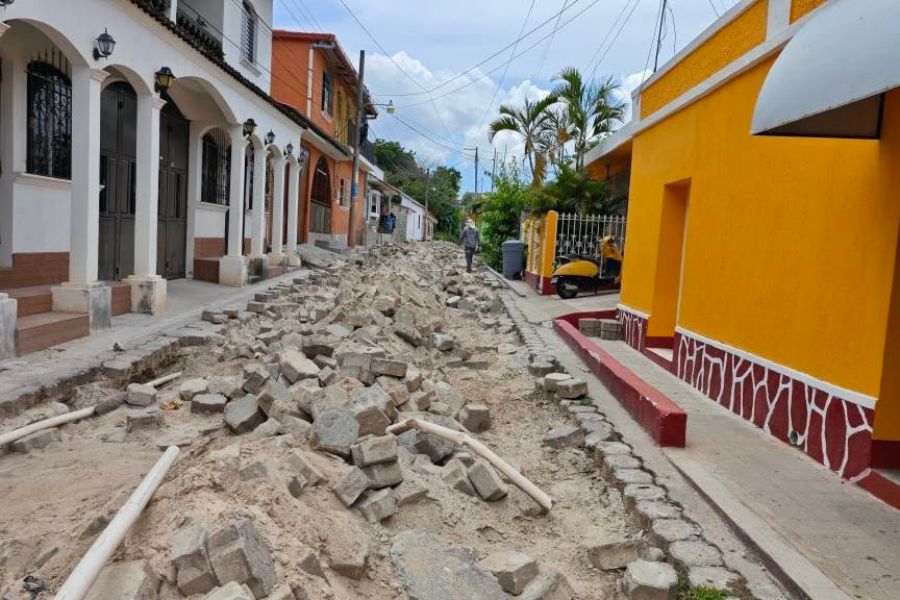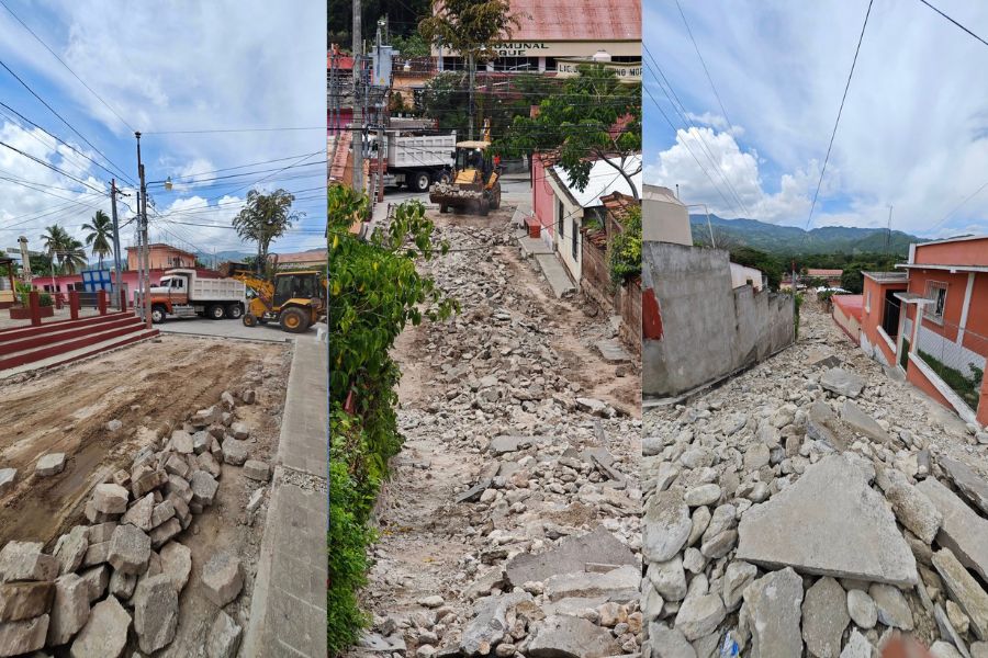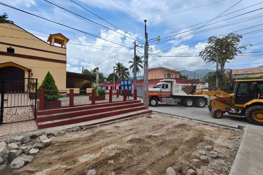 Continúan los trabajos para mejorar la calle principal en la aldea La Trinidad.